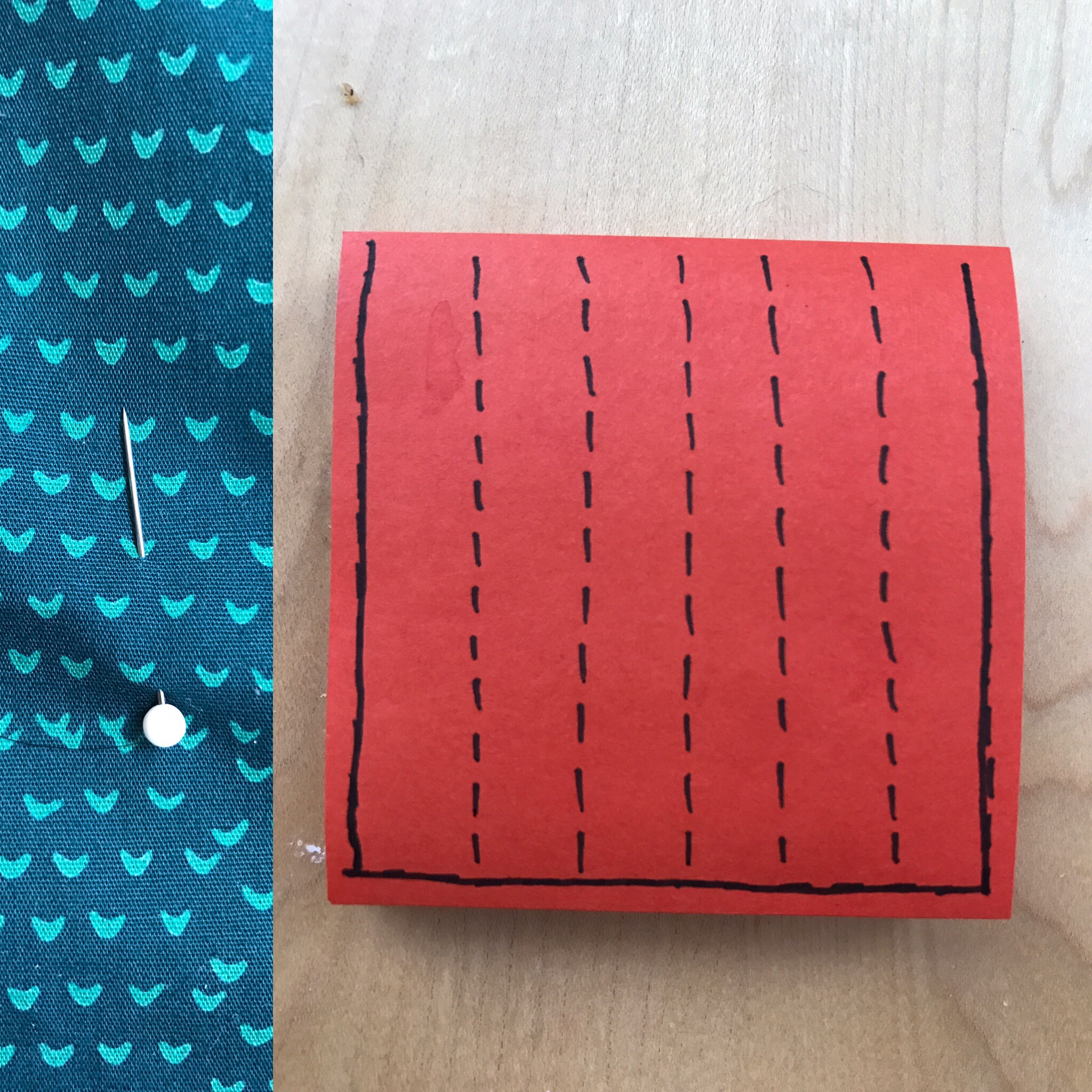 - Mark BUT DON’T SEW your rows(where you’ll sew horizontally). Honestly, use chalk for this. I used pins, and it sucked. I had to be super careful as I was sewing and I was always worried about getting pricked or the pins falling out.
