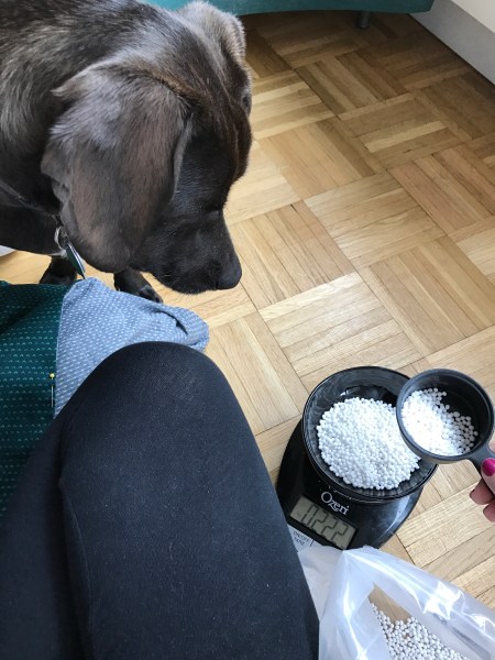 Once I decided I wanted one, I went shopping. And basically stopped about 10 minutes later. I couldn’t find one heavy enough for me(more on that later) on Amazon or Etsy for less than $100, and the fabric on each of them was just the worst. Since my awesome sister and brother-in-law got me a sewing machine a few years ago, I was like, F this, I’m making my own. I looked at a few diys, and ultimately decided on this one, though they’re basically all the same. Then I went shopping again, but this time it was for fabric and poly pellets. I like to get my fabric from superbuzzy in Ventura, California. I know this is like heaps far from NYC and why don’t I just go to the garment district, but I like superbuzzy because they carry a lot of unique fabrics that you can’t get anywhere else. I also wanted something with a subtle pattern that was relatively lightweight but still good quality, and that can be hard to find. How the fabric feels is important, since a weighted blanket is all about touch.